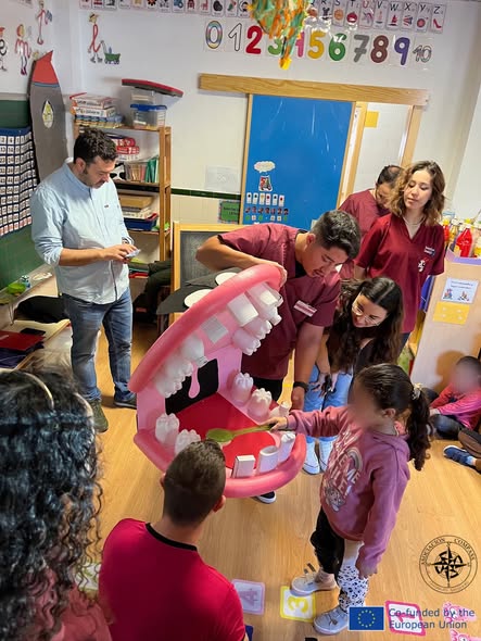 The main goal of this workshop was to help children understand the importance ofkeeping good daily habits, such as personal hygiene, especially oral hygiene, eatinghealthy foods, and keeping their home tidy. We wanted them to realize that taking care ofthemselves and their surroundings makes them feel better, healthier, and happier.We began with a short and fun discussion where the children shared what they do everyday to stay clean and healthy. We talked about personal hygiene and focused on oralhygiene: brushing teeth after meals, visiting the dentist, and taking care of their smile. Weused a big toothbrush and a model of teeth to show them the correct way to brush, andthey loved trying it themselves.Next, we played a game about healthy eating. The children had to sort pictures ofdifferent foods into two groups: “everyday foods” and “sometimes foods.” They learnedthat fruits, vegetables, and water help them grow strong, while sweets and soft drinksshould only be eaten occasionally. They also talked about their favorite healthy foods anddiscovered how eating well gives them energy to play and learn.Finally, we talked about keeping their home and room tidy. We explained that having aclean and organized space helps everyone feel calmer and happier. The children sharedexamples of how they help at home, such as putting away toys, folding clothes, orhelping set the table. We played a quick activity where they had to “organize” a messyroom using cut out pictures, something that made them laugh a lot.Through games, songs, and group discussions, the children learned how small dailyhabits can make a big difference.They understood that:-Brushing their teeth keeps their mouth healthy.-Eating healthy foods helps their body grow strong.-Keeping things tidy makes home life easier and more pleasant.The atmosphere was cheerful and participative throughout the workshop, and thechildren left feeling proud of what they had learned and motivated to put it into practice athome.